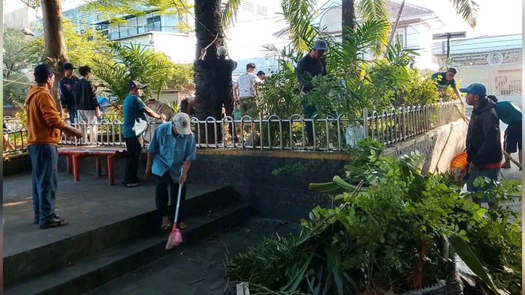 GURILAPS.COM || Warga dan pedagang kaki lima (PKL) serta instansi pemerintahan bergotong royong melakukan kegiatan bersih-bersih di kawasan Alun-alun Palabuhanratu pada Jum’at (24/4/2026).